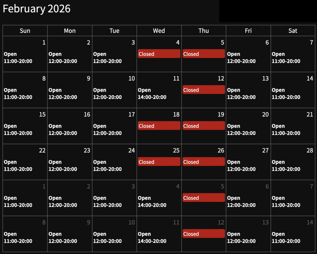 Information 2026年2月の営業につきまして 2026.1.29 ☑︎ 2月は「水曜日・木曜日定休」に戻して営業いたします ☑︎ 2.11 Wed(建国記念日)は14:00-20:00で営業いたします ☑︎ 2.6 Friと2.7 SatはCreative director岡田亮二がお休みいたします